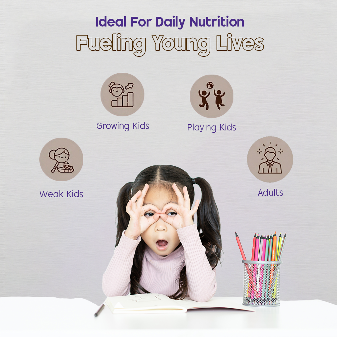 A nutritious blend of millets and grains that provides natural energy, fiber, and essential nutrients. This combination helps support balanced nutrition and healthy development.