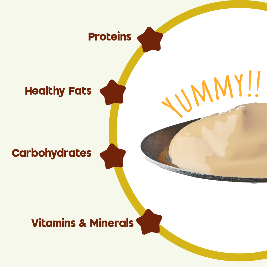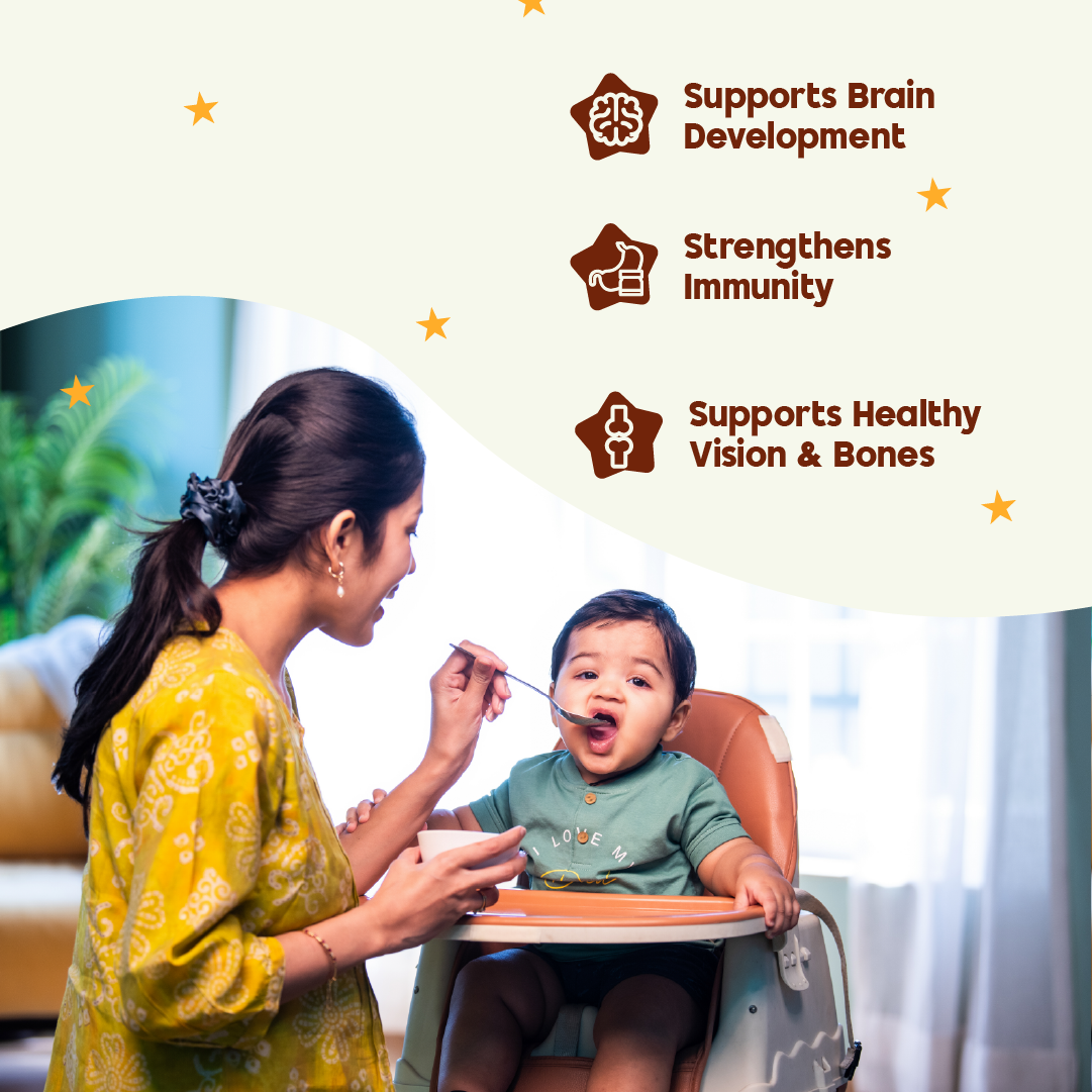 A nutritious blend of traditional grains that provides natural energy, dietary fiber, and essential nutrients. These grains help support healthy growth and easy digestion.