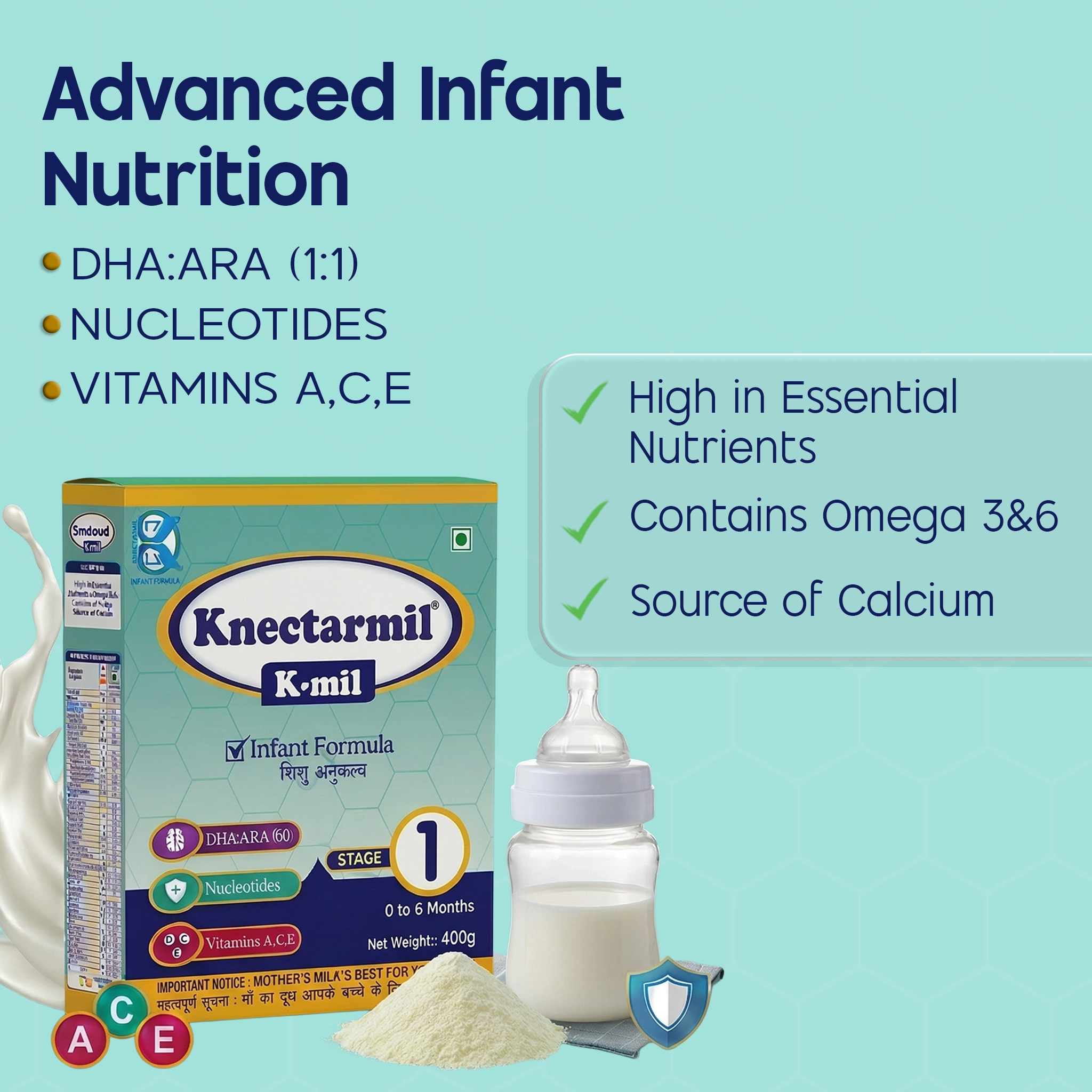 Milk enriched infant milk substitute for up to 0 to 6 months infants with all vital macronutrients fortified with micronutrients like DHA, ARA, nucleotides, vitamins and minerals to improve overall growth and immunity.